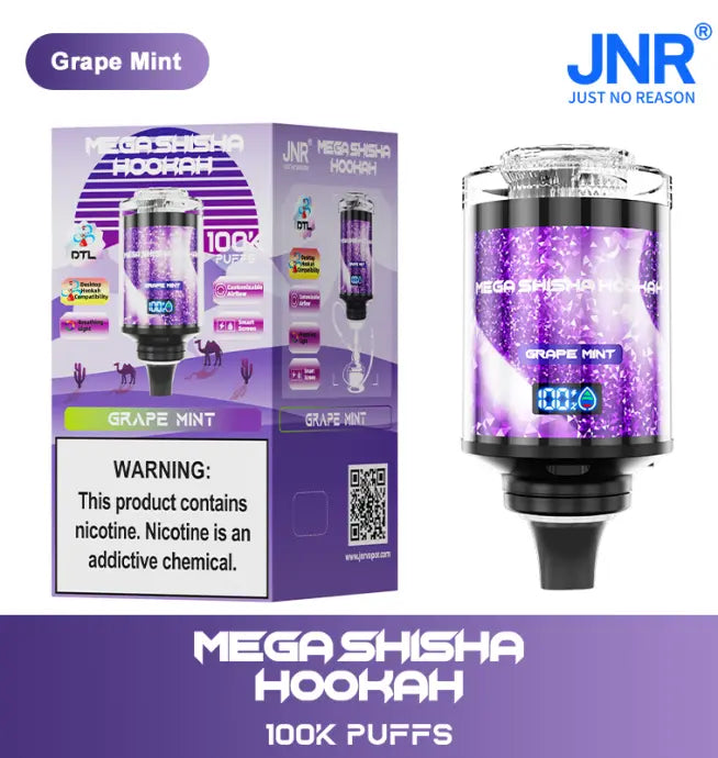 JNR Mega Shisha Hookah 100000 PuffsDisposable Vape is a game-changer for those who seek an extended vaping experience with premium features. Offering up to an incredible100000 puffs, this device is perfect for long-lasting sessions that deliver consistent, satisfying vapor every time.