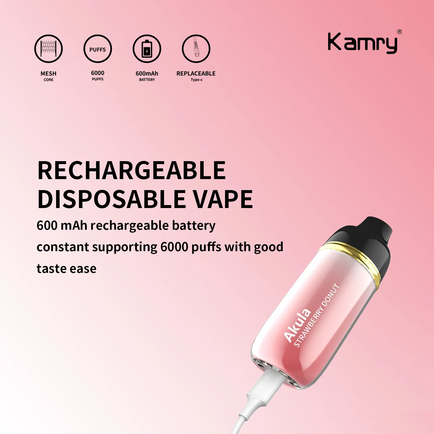 - 1 x Kamry Akula 6000 Puffs Disposable Vape Device (15ml pre-filled pod, 600mAh battery included)