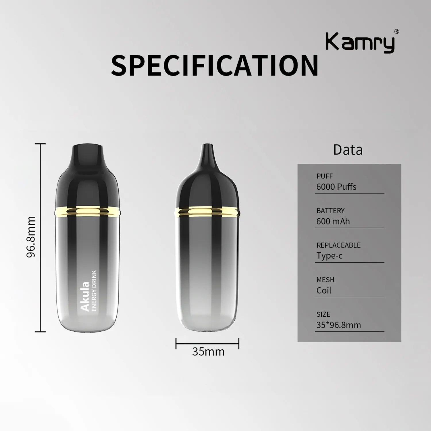 Kamry Akula 6000 Puffs Disposable Vape Specifications: