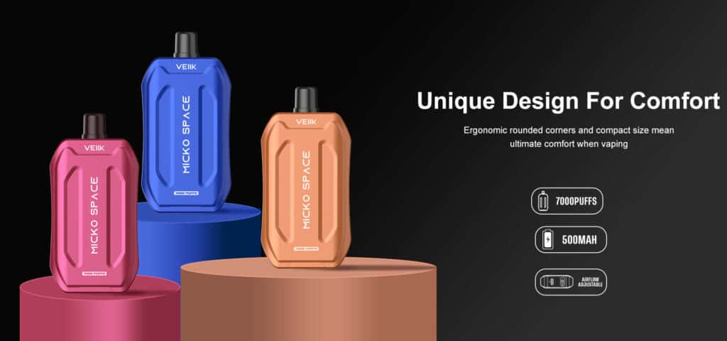 VEIIK Micko Space Disposable vape intrigues many vapers for its distinguished features. It has a large capacity of e-liquid, a 400mAh battery, and an essential mesh coil, delivering up to 7,000 puffs of vapors easily. Therefore, it is undoubtedly the best choice for you to start and enjoy your vaping experience.