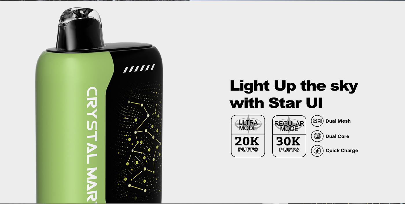 CRYSTAL MARY PulseX is a next-generation disposable e-cigarette designed for modern users seeking quality and convenience. Combining dual-mode inhalation, a powerful battery, dual-network atomization technology, and premium flavor, it's suitable for both personal use and professional dealerships.