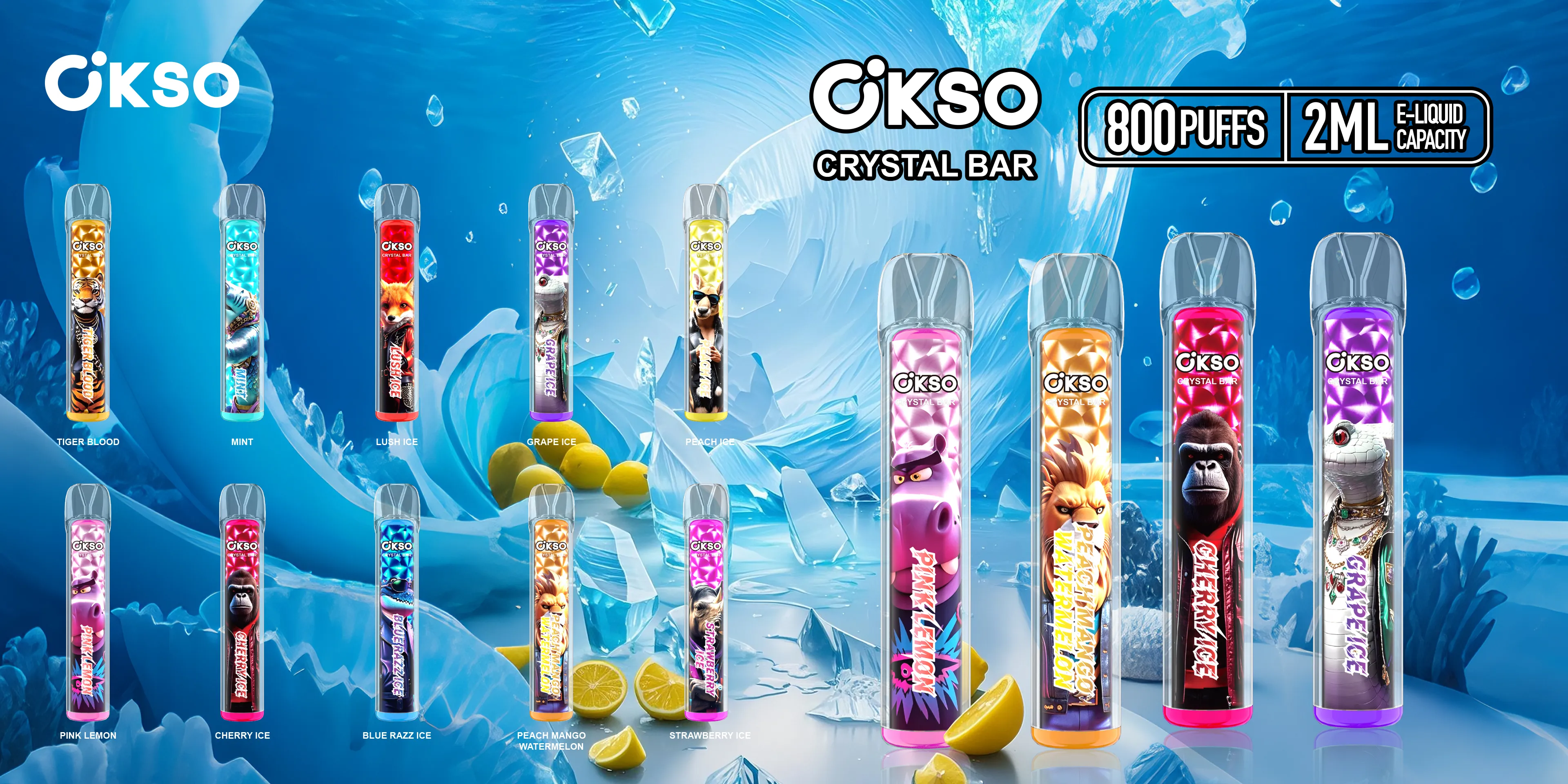 The OKsO Crystal Bar 800’s 10 carefully crafted flavors are a testament to its dedication to sensory excellence. Each profile is designed to evoke vivid memories and satisfy diverse tastes—from crisp menthols to tropical fruit fusions: